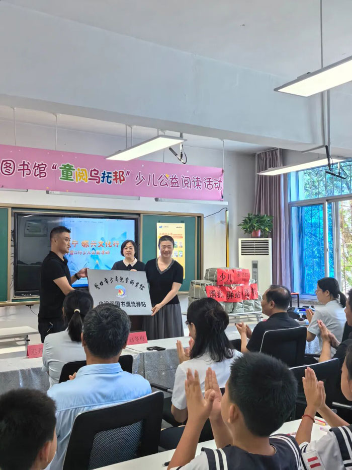 与此同时,“小浪花图书漂流驿站”在西市区实验小学正式建立。少儿图书馆与学校签订了流通协议,明确了双方的权利和义务,确保图书能够定期更新、流通顺畅。在热烈的掌声中,营口市文化旅游事业发展服务中心主任赵冬梅为西市区实验小学授予了“小浪花”图书漂流驿站牌匾。这块牌匾不仅是一份荣誉,更是一份责任,它标志着西市区实验小学成为了省内优秀公共文化资源共享的重要一站,后续我们将为孩子们提供更加丰富、多元的阅读资源。