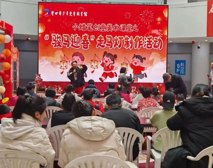 颁奖仪式后,“小蜡笔创意美术课堂之‘骏马迎春’走马灯制作活动”欢乐开启。活动以传统非遗灯艺为载体,通过寓教于乐的形式引导孩子们感受年俗文化。志愿者老师现场讲解马年生肖文化与走马灯的历史寓意,并示范灯架组装、彩纸剪裁、装饰粘贴等技法。孩子们手持材料,发挥想象力,将一盏盏造型可爱、色彩斑斓的小马灯点亮。灯光摇曳间,传统文化的种子悄然播撒在童心之中。活动让孩子们在欢乐中了解元宵节,锻炼了动手能力与创造力,培养了团队合作精神与审美能力。更重要的是,孩子们深入了解元宵节与走马灯文化知识,增强了对中华传统文化的认识、理解与民族自豪感。参与活动的孩子兴奋表示,第一次制作走马灯,既好玩又学到知识,要讲给更多小朋友听。家长们也高度评价活动,希望多举办。
